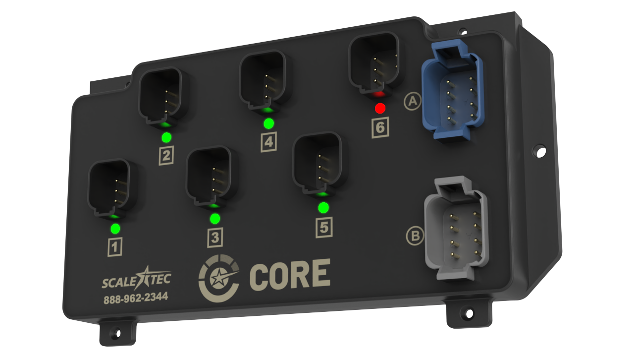 Scale-Tec's new multi-ADC scale controller supporting up to 6 load cell channels simultaneously with industry leading diagnostics. Per-channel fault reporting via sjbFaults in the state stream.